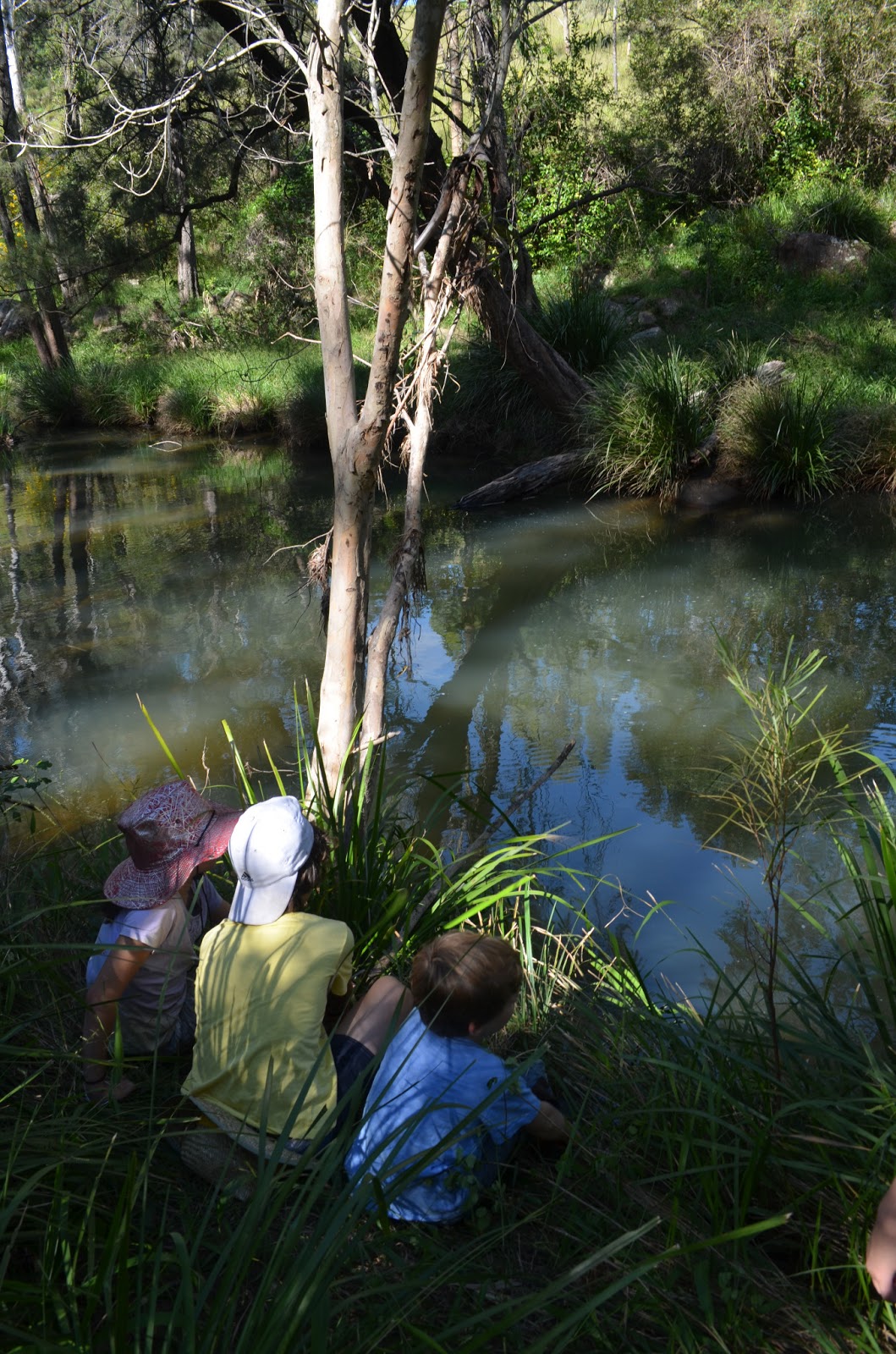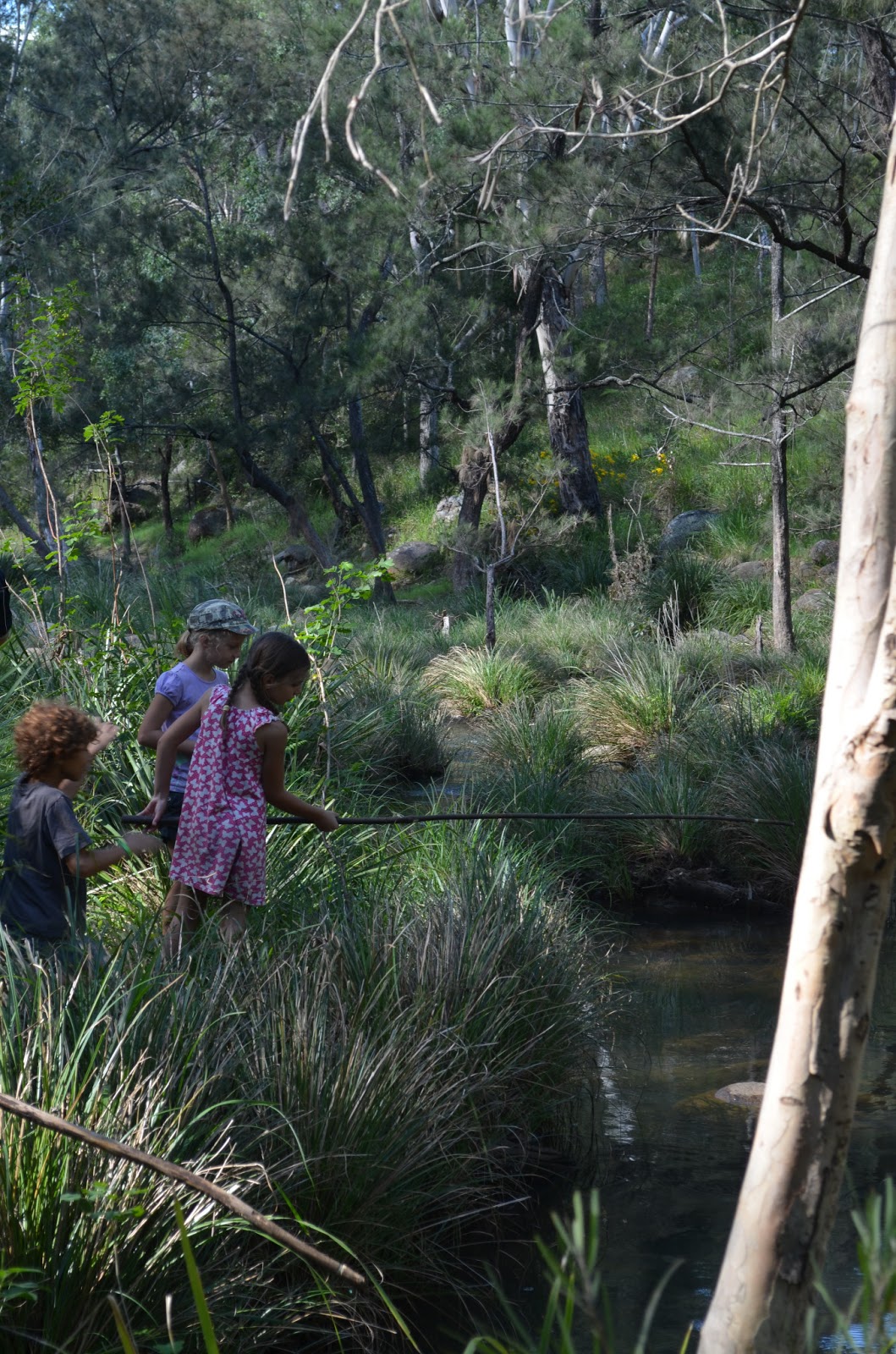 At the party, the kids were given ‘ration packs’ (boxes filled with party treats) and sent on their merry way with Innes and his two assistants. Their first call of duty was to hunt for worms – a 5 year old boys’ favourite activity!!!! They then set off to find some sticks they could use as fishing rods. After sanding their fishing rods with sand-paper fig and attaching some line and their worms, the kids all sat around the creek talking, eating lollies and fishing. It was the perfect party for Rohan. The kids all thoroughly enjoyed themselves and I didn’t feel like I wanted to gauge out my own eyes after it was all over (as is normal for me after a kids party). The kids did not bring home any dinner…. but there were plenty of nibbles from fish and the kids did not seem to mind too much that they didn’t catch anything.