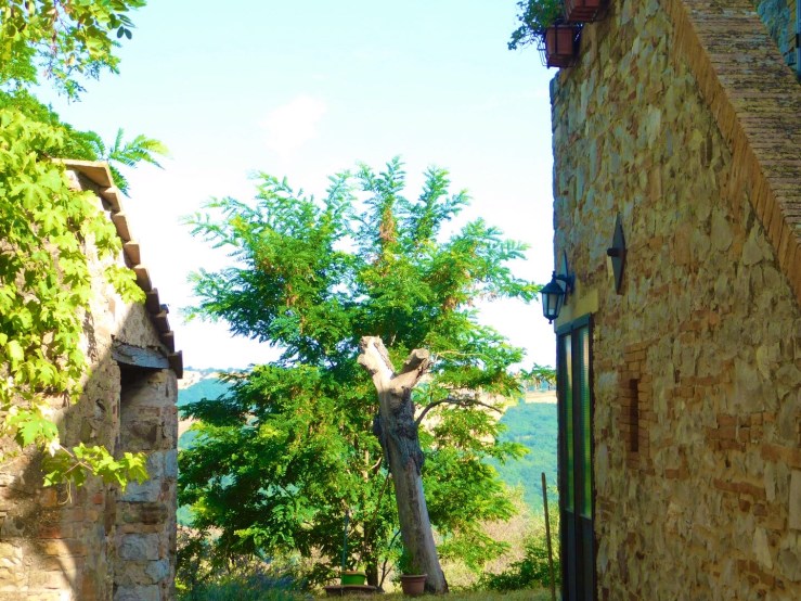After we left the castle we began to make our way to our next destination, a farm stay in remote Tuscany. This place was also chosen at random and is another notch in my belt for spectacular Airbnb choices. Roccalbenga is a tiny town in the Tuscany region with only just over a thousand residents. It looks straight out of a medieval picture book as the streets are so narrow that they only allow for either walking or one tiny car drive up them. It is a true relic of former times and seems to be a very traditional town – definitely not touristic. I will take some pictures and find out more about the history for a later post. Our farm is about 15 minutes out of town and is perched on top of a hill with spectacular views. Our host, Luciano, runs this farm and has sheep, cows, bees, chickens, grapes, and olives. He makes his own wine which Ben declared to be “the best red wine he has EVER tasted” and milks the sheep. We are not sure what he does with the sheep milk. I haven’t figured out whether people drink it or if it is used for cheese. His house is very typical of Tuscan houses. It may or may not have been the one used in the movie “Stealing Beauty” (I’m guessing it isn’t but it is so similar in many ways that I’m just pretending that it is).