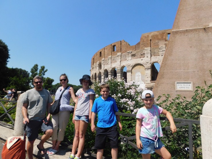The Colosseum, which would have been my first pick to tour, was ruled out due to cost. I want to do an underground tour which would have set us back $1000 for our family and give rise to all kinds of fear/terror/hysteria in my offspring. Selfies from the outside would have to do for now, along with a brief description of it’s history.