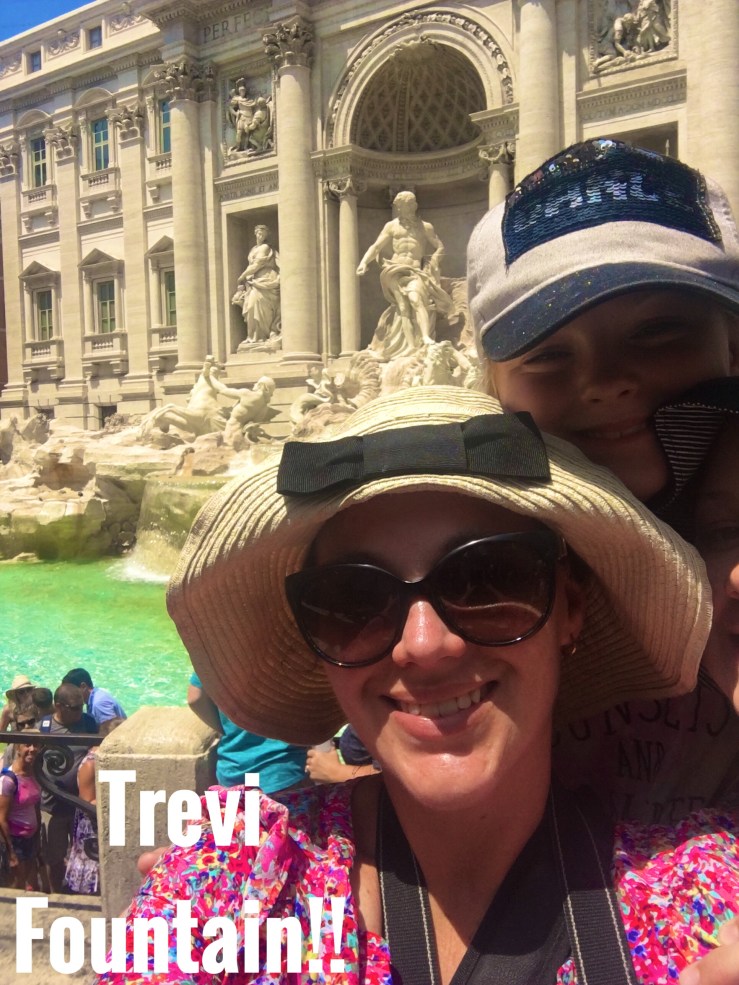 The fountain of Trevi was so crowded it was almost impossible to get a photo of the kids in front of the water without having tourists block the water. We couldn’t even get anywhere near it to be honest. No chance of tossing a coin or sticking our hand in.
