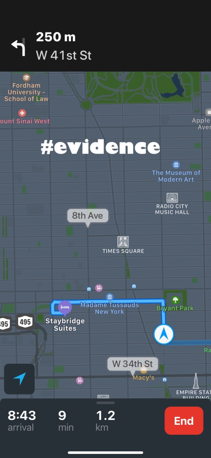 The route from JFK to our hotel, Staybridge Suites near Times Square, was a mere 30km but according to our driver would take well over an hour. “Impossible”!! I thought to myself. As predicted the drive did take over an hour. I was following along with my gps and at one point it said the hotel was 1.2km away but we still had 9 minutes till arrival. I can totally walk faster than that. Even lugging suitcases and whinging children!! I do not think driving (or being driven) is a good idea in NYC. Every time I put a destination in my GPS driving is always the LEAST effective mode of transportation in regards to time.